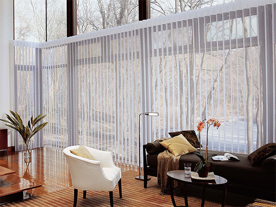 A cortina NOBLESSE é ideal para grandes vãos. Agrega à sofisticação e o requinte da cortina tradicional a praticidade e à modernidade de uma persiana - Você encontra em Blumenau e Vale do Itajaí - SC na