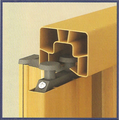 Um sistema de montagem e encaixe, desenvolvido com exclusividade pela BCF, impede que os pinos de sustentação da Plast Porta ® se soltem e torna seu deslizamento suave e silencioso.